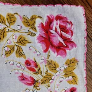 VINTAGE PINK ROSE HANDKERCHIEF.