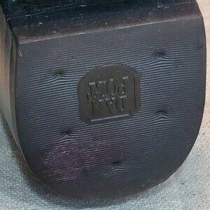 VINTAGE DAN POST BLACK LEATHER WESTERN DRESS BOOTS SIZE 9.5 D MADE IN USA. THE STITCHING IS WHITE WITH THE SIGNATURE " DP" INITIALS SEWN INTO THE LEATHER ON THE RIGHT BOOT ANKLE AREA, AS SHOWN IN PHOTO. THE LEATHER SOLES ARE ORIGINAL AS ARE THE ORIGINAL DAN POST RUBBER HEELS.