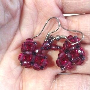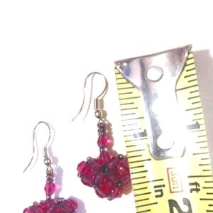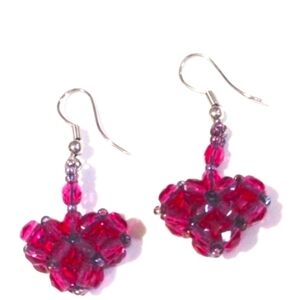 -Vintage Dark Pink and Blue Sparkling Crystal Silver-Tone Drop Hook 2" Earrings.