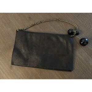 VINTAGE DAVID GALAN BLACK SUEDE TIERED GLASS BALLS CLUTCH BAG