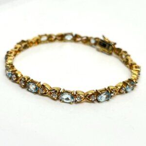 VINTAGE DBJ 925 VERMEIL BLUE TOPAZ CZ TENNIS BRACELET GOLD STERLING SILVER 7”