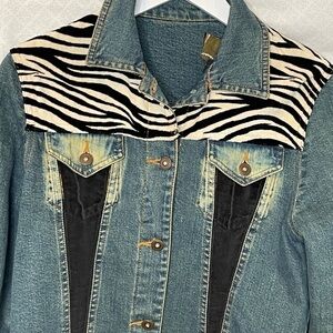 Vintage DD New York Jean Jacket w/ Velvet Animal Print Embroidery Size Large