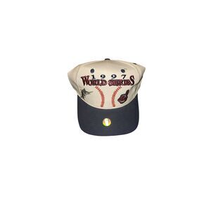 VINTAGE DEADSTOCK LOGO 7 MLB 1997 WORLD SERIES MARLINS INDIANS SNAPBACK HAT