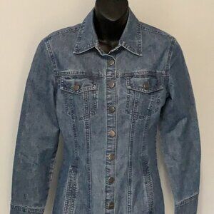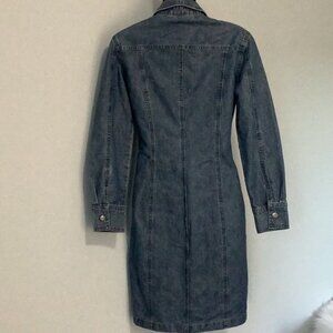 This classic denim Shirtdress will take you into fall with ease Etremely well made with finished seams throughout High quality denim fabric not flimsy Front pockets Easy care cotton denim medium wash Metal button closure Form fitting seams see measurements Size Small Made by Camaieu France Can be dressed up or down paired with leather dress shoes or white sneakers your preference Photo with purse for styling purposes only Ecellent condition 10 10