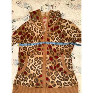 VINTAGE DESIGNER ANIMAL PRINT LEOPARD CASHMERE HOODIE CARDIGAN SWEATER