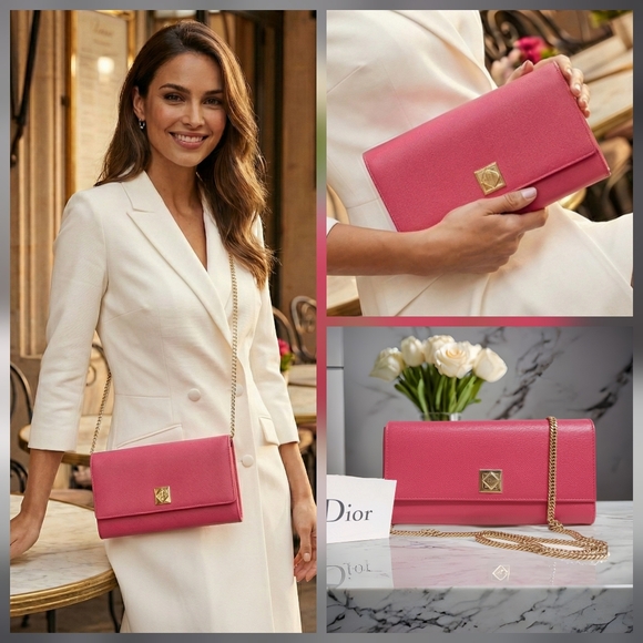 💖 VINTAGE DIOR Fuchsia Pink Leather Clutch with Chain - WOC