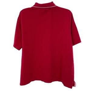 Details: This vintage red short sleeve polo shirt features a small white trim around collar and by buttons. Mickey Mouse is embroidered over left chest with some hearts and the words "Dreamy". Also a red heart embroidered at right collar tip. 3 button closure.