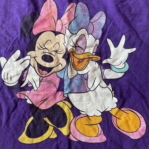 Vintage Disney T-Shirt with Minnie Mouse & Daisy Duck image on purple background