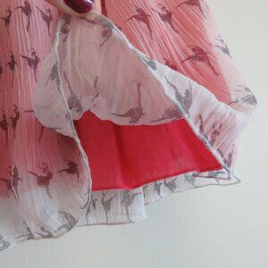 Hot pink lining with delicate light cream / while crepe tulle layer with ballerina print