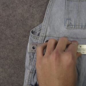 Features: Adjustable shoulder straps with metal hardware; front bib pocket; front hand pockets; rear patch pockets; side button closures; utility/hammer loop