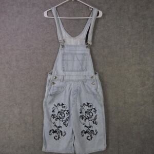 VINTAGE D'Mode Classix Bib Overalls Womens Medium Denim Floral Shortalls 90s