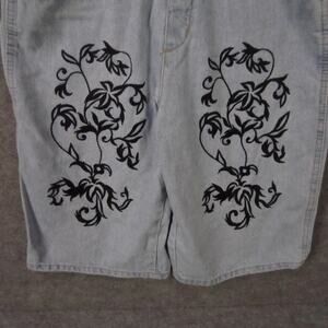 Color: Light wash blue with black floral design on front legs