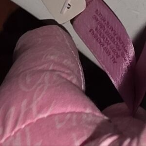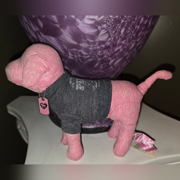 Charming plush dog in vibrant pink. Features iconic PINK branding.