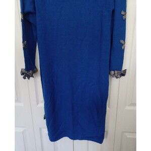 VINTAGE DON SAYERS For WELLMORE Blue Beaded 3D Bows On Sleeves SWEATER DRESS 12