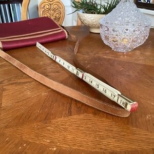 Very good condition, clean, no odors, a few places on edges have some wear and a couple inside small pen marks, please check photos and ask questions. Has outside back pocket inside, zippered pocket and adjustable shoulder strap these bags last a very, very long time. I believe this one is probably from the 70s.