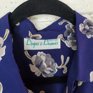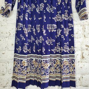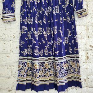 VINTAGE DRAPERS & DAMONS Cottage Core Blue FLORAL Pleated DRESS Long Sleeve SZ M