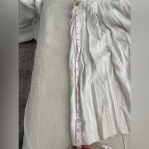 @danademott hi!! Oh my goodness, I am so sorry! Yes, it fits loose on me! The material is 95% rayon and 5% flax. I will post measurements now!