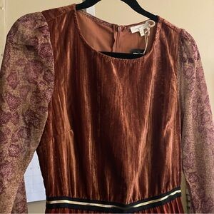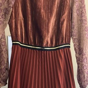 VINTAGE BRONZE AND MULTI COLOR PLEATED DRESS. OUTSTANDING! SO
