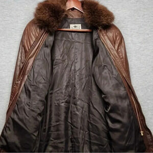 VINTAGE Damselle Size L fur collared (removable) buttery soft leather jacket/coat. Quiet luxury. Brown, excellent condition; a small “indenture” on the right hand sleeve toward the wrist. I did not notice this at first. My apologies. Other than that, this is a beautiful jacket. Drawstring Waist, Dupont thermolite for warmth, Pit-pit: 24”, Shoulders: 16”, Arm Length: 24”, Waist: Approx. 18”, Length: 32” long. This is a quality, luxurious jacket. Vintage and gently pre-loved.