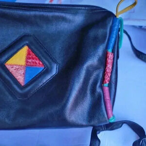 VINTAGE Danielle Nicole WOMENS MULTI-COLORED PATCHWORK LEATHER HANDBAG Crossbody
