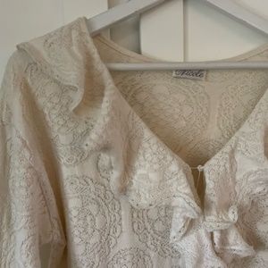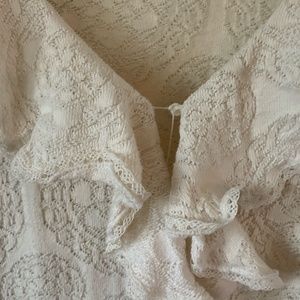 Gorgeous and cotton lace. Best fits a small/medium. Ryuffle front and only wear is the elastic on the front button is a tad stretched. Otherwise excellent vintage condition!
