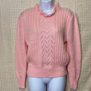 VINTAGE David Brett Pink Knit Sweater with Ruffle Neckline
