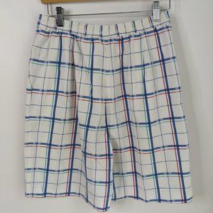 VINTAGE David Smith Womens White Plaid Pleated Shorts Size 14 - Made in USA
