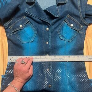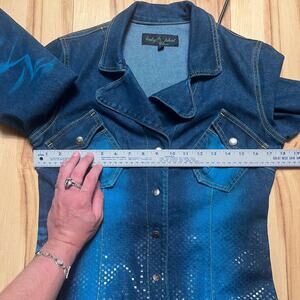 VINTAGE Deadstock 90s Baby Phat Rare Denim Trench Coat Size L Y2K Electric Blue
