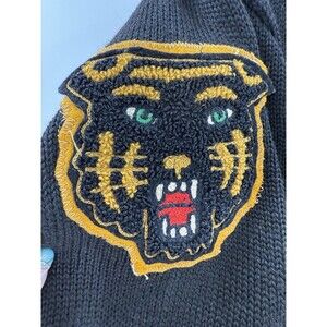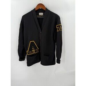 VINTAGE Dehen Knitting Co. Portland Oregon Black Wildcat Lettermans Sweater 1972