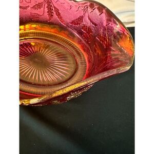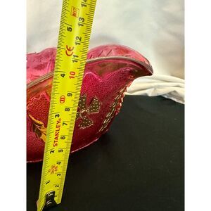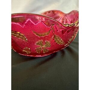 VINTAGE Delaware US GLASS Pink Rose Stain Fruit BANANA Bowl Gold Accent ANTIQUE
