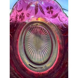Delaware pattern by US Glass - center or fruit bowl in pink with heavy gold accents on the raised floral, thistle and leaf pattern.