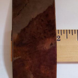 Buckle is on original adjustable faux leather belt strip. Belt strip is 2 inches wide and 42 inches long from end to end. Belt strip is a shiny, faux tortoise shell color. It can be adjusted to fit -- or replaced.