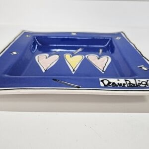 Vintage rare Diane Peck Studio Art dish. Blue with three heart design. Perfect as decor or as a trinket dish. Signed on front and back. Dated 1996. Measures about 9" x 9". Some crazing on surface as shown, but no cracks or chips. Smoke-free home.