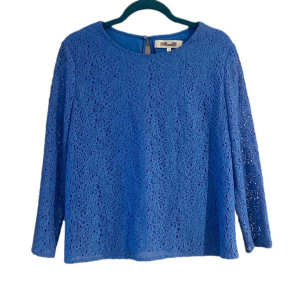 Excellent condition! Beautiful blue lace top, fully lined. Vintage DVF and an amazing piece to add to a collection!