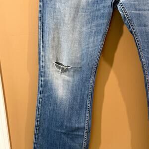 The Vintage Diesel Zatiny Jeans for men in size 36x31 are a classic choice for those looking for a comfortable and stylish pair of blue denim pants. Made in Italy, these bootcut jeans feature a solid pattern with embroidered logo accents, giving them a unique and vintage appeal. The mid-rise and relaxed fit make them perfect for everyday wear, while the 5-pocket design adds functionality and style to the garment. Ideal for any season, these machine washable jeans are a timeless wardrobe staple for those who appreciate quality and craftsmanship. One hole on knee as shown in picture. Adds to character