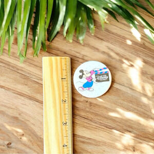 Celebrate classic Disney style with this charming vintage Mickey Mouse button! Featuring Mickey in a vibrant retro outfit holding a clapperboard with “The Disney Store” text, this collectible button is perfect for Disney fans and memorabilia enthusiasts alike.