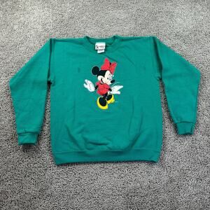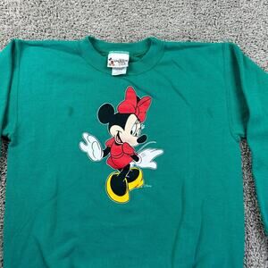 VINTAGE Disney Sweatshirt Girls Large Green Minnie Mouse Walt Disney World 90s