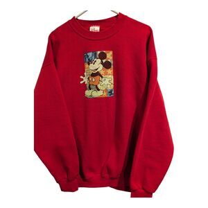 VINTAGE Disney Sweatshirt Men XL Red Mickey Mouse Graphic Pullover 90s Adult