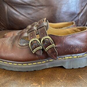 VINTAGE Doc Marten Oxblood Leather Mary Janes in EXCELLENT CONDITION! These are a deep red leather - not brown. Minimal signs of wear for shoes from the late 90’s! Light scuffs on the sides. Adjustable double buckle straps. Heavy sole. Marked as size 6UK which is 8US. I wear 8.5-9 and these fit me snug.