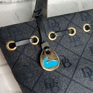 VINTAGE Dooney & Bourke Canvas Signature DB Bucket Leather Trim Bag Purse