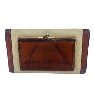 VINTAGE Dooney & Bourke Pebbled Ivory Leather With Tan Trim Classic Wallet Duck