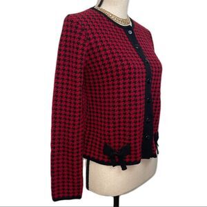 VINTAGE Dorby Woolen Houndstooth Black and Red Cardigan Sweater LIKE NEW!