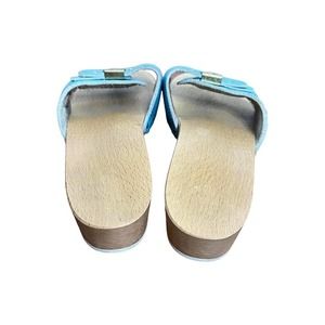 VINTAGE Dr. School's The Original Wood Sandals Slides Blue Leather