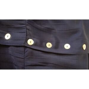 VINTAGE Dress 80s 90s MONICA HEART Pleated Long Midi 10 Navy Blue Button Back