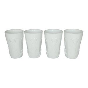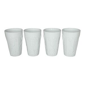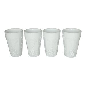 VINTAGE Drinking glasses Set of 4 Milk Glass Grape Leaf pattern Embossed White