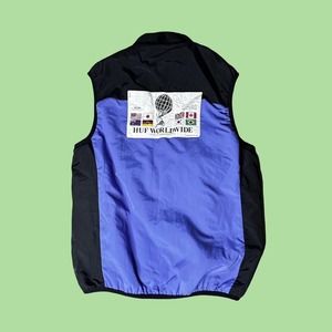 Description: vintage early 2000‘s HUF worldwide Atlas Stone reversible purple/black vest, size medium (estimate no tag), and in great condition.