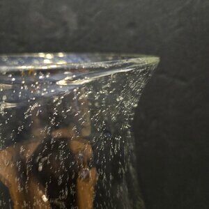 BEAUTIFUL HAND-BLOWN VASE. EGGPLANT PURPLE TO CLEAR GLASS. CONTROLED BUBBLES. HEAVY PEICE OF GLASS. NO CHIPS OR CRACKS.
