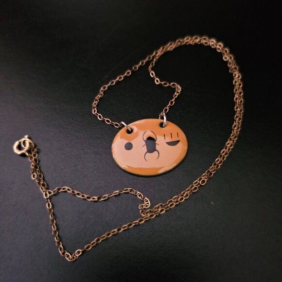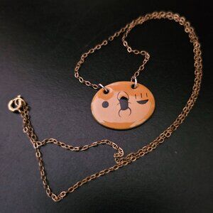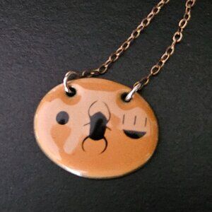 FABRICATION: Appears to be Handcrafted, Enamel Oval with Gold-Toned Non-Adjustable Chain with Spring Ring Clasp for Security