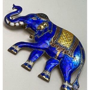 Show off your love for vintage jewelry with this stunning sterling silver brooch pin from SIAM. The intricate enamel design features a beautiful blue elephant, adding a touch of elegance to any outfit. The brooch is made from high-quality sterling silver with a purity of 925, ensuring durability and long-lasting wear.
