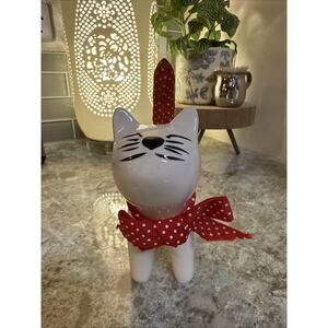VINTAGE ENESCO CERAMIC SMILING CATS WITH POLKA DOT BOWS & TAILS